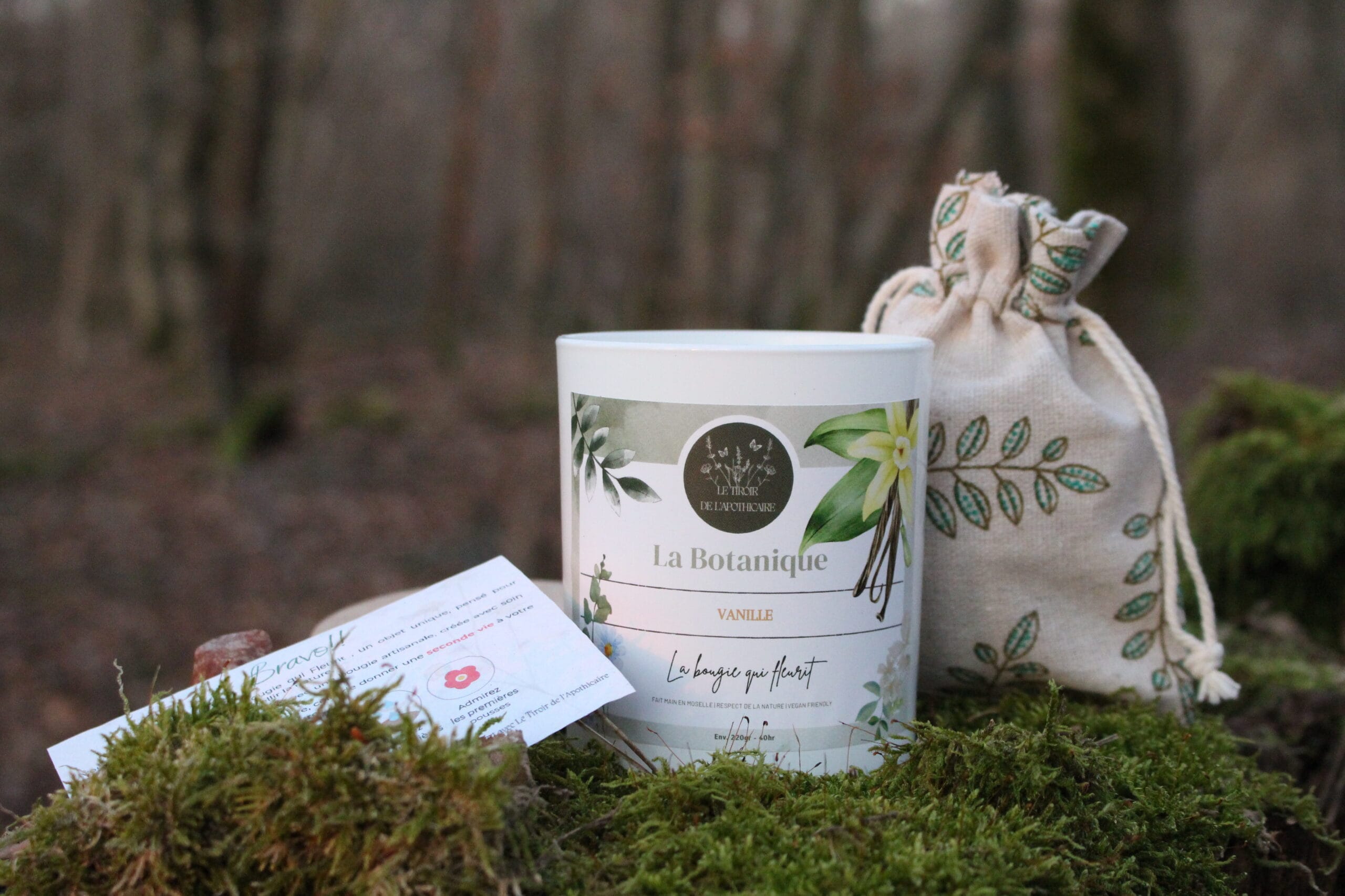 16 juillet 2025Pourquoi en adopter une ?À travers les gestes simples du quotidien, certaines créations racontent bien plus qu’elles ne le montrent. Alors si une bougie ne se contentait pas seulement d’embaumer ton intérieur, mais devenait aussi un acte de renaissance pour la nature ? C’est tout le concept de La Bougie qui Fleurit par Le Tiroir de l’Apothicaire : une bougie végétale, artisanale et parfumée. Elle est pensée pour être entièrement réutilisée. Et pour finir, vous faites pousser de vraies fleurs, directement dans son propre pot !Tout d’abord découvre pourquoi cette bougie qui fleurit n’est pas qu’un objet de décoration, mais un geste engagé, doux, et plein de poésie.🌱 Une bougie qui fleurit pensé pour votre bien-être et la natureChaque détail de cette bougie a été imaginé pour prolonger son histoire au-delà de la flamme. Une fois consumée, elle devient un écrin de vie : son propre contenant se transforme en pot de fleurs.À l’intérieur, tu découvriras une carte en papier ensemencé (fabriquée en France par Papier Fleur) et un galet de terreau compressé, glissés dans un sac en jute réutilisable. Il suffit de réhydrater le terreau, planter la carte, et laisser pousser la magie.Le tout s’accompagne d’un verre blanc de 30cl, au design élégant, surmonté d’un couvercle en bois naturel. Un objet pensé pour une seconde vie.Ici, rien ne se perd : tout se transforme.✨ Une attention jusque dans les moindres détailsUn détail qui fait toute la différence…Plus précisément, chaque bougie est accompagnée d’un petit mot glissé dans le colis: une carte ensemencée imprimée avec douceur. En effet, elle célèbre ton choix d’un objet qui prend soin de toi et de la nature. Pour résumer, plus qu’une simple notice, c’est une intention que tu plantes, avec amour et simplicité.🔥 Comment ça fonctionne concrètement ?Profite de la bougie : une cire végétale (sans OGM ni paraffine) parfumée du parfum de ton choix, à la combustion propre.Une fois consumée : nettoie simplement les résidus de cire avec de l’eau chaude.Réhydrate le galet de terreau fourni et place le dans le contenant.Plante la carte en papier ensemencé et suit les instructions de celle-ciArrose et place en lumière naturelle… la magie opère.🌼 Le mélange de graines (bio non traitées) est 100% français et adapté à la culture en pot. Un mélange de plusieurs fleurs des champs, à toi la surprise végétale !🌸 Pourquoi cette bougie qui fleurit est unique ?♻️ Tout est réutilisableLe pot en verre devient un véritable pot de fleur.Vous ne jetez rien: ni l’emballage, ni le contenant🌿 Une fabrication artisanale et localeCire végétale européenne, parfum fabriqué à Grasse.Coulée à la main en petite série dans notre atelier.Papier ensemencé par une entreprise engagée.🎁 Une idée cadeau symboliqueOffrir une bougie qui donne naissance à des fleurs, c’est offrir une expérience durable, une attention pleine de sens.Pour les naissances, les remerciements, les cadeaux d’hôtes ou les occasions spéciales.✨ Le mot de la créatrice« Je voulais une bougie qui ne disparaisse pas une fois consumée. Un objet qui laisse une trace, qui transforme. Pour moi, cette bougie est un symbole de renouveau, d’attention à soi et au vivant. »